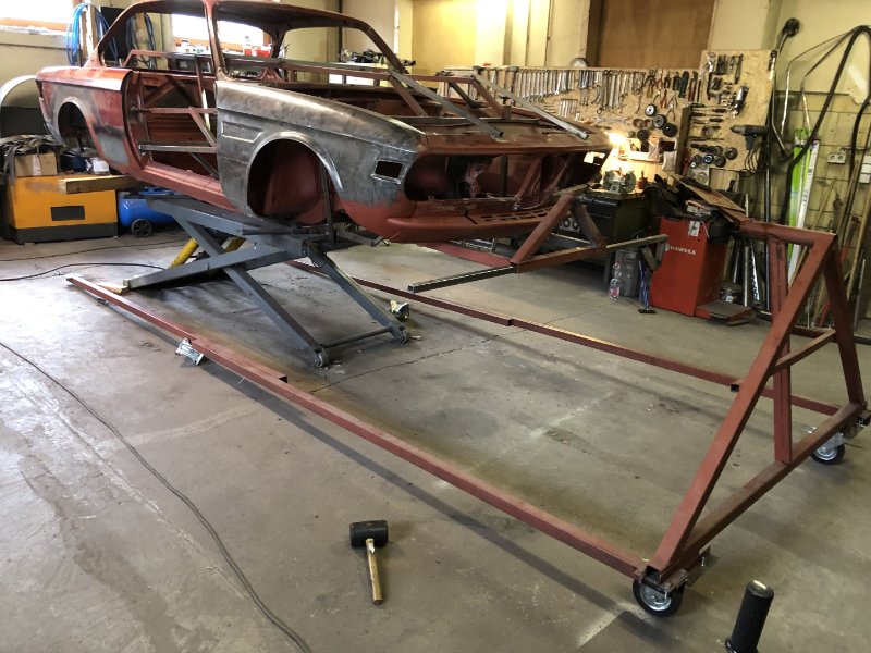 Aktuell bin ich dabei ein Rollgestell zu bauen um das Fzg. auch mal mit dem Anhänger transportieren zu können. Wird auch höhenverstellbar, damit ich bei der Antriebsmontage die Scherenbühne zum drunterheben der gesamten VA nutzen kann.
