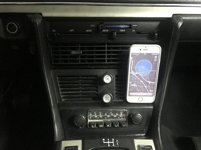 Mit Hilfe eines gesteckten und somit mit einem Handgriff entfernbaren dezenten Magnethalters im Grill von Lueftung oder Klimaanlage kann man ein Smartphone im Sekundaersichtfeld des Fahrers platzieren und auch die Navigation von Waze oder Google Maps nutzen, wobei Sprachhinweise ebenfalls in die originale Audioanlage eingespielt werden.
