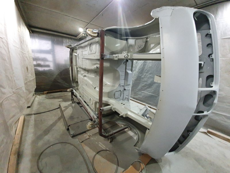 Allerdings ist das entfernen der 40 Jahre alten Orangen Grundierung mit der der Wagen damals geschützt wurde, ein Alptraum und erschwert die Arbeit.