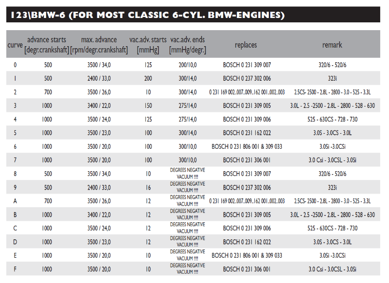 Seltsam ist auch, dass in der Tabelle (siehe ganz am Anfang) unser Verteiler zweimal auftaucht Kurven 7 und F! Das kapiere ich nicht, weil der E9 CSI ja nur einen Verteiler hat....da gibt es nicht zwei Varianten soweit ich weiß.