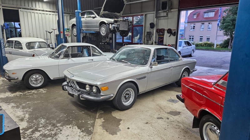 Nach diesen letzten positiven Erfahrungen habe ich mir in den Kopf gesetzt, ein drittes Mal in Italien zuzuschlagen und nach einem E9 zu suchen, der mir schon seit Jahren in der Nase steckte. Kurzer Rede langer Sinn, der 3,0 CSi, der seit gestern in meiner Garage steht, war in einem ital. Portal inseriert, stand aber im süditalienischen Bari, was ja nicht gerade um die Ecke ist. Nach diversen Fotos, Chats, Schlaumachen beim Clubtreffen in Dresden usw. gabs nur die Wahl, entweder oder. Wir haben oder gewählt und sind nach Bari geflogen und haben uns das Auto angesehen und gekauft. Der Verkäufer, ein gut situierter Geschäftsmann, war so von seinem Auto überzeugt, dass er überrascht war, dass da ein Deutscher kommt, um mit Magnet und Lampe in den unmöglichsten Ecken seines Autos herumzustochern. Das war zumindest der Eindruck meiner Frau, die ihn bei meinen Aktivitäten beobachtete. Wohl wissend, dass immer etwas auftaucht, was man übersehen hat, war das Ergebnis so positiv, das ich das Auto gekauft habe.