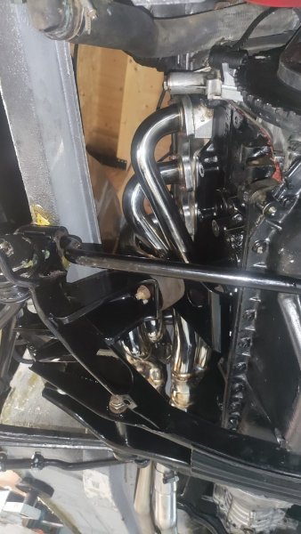 Ich glaube, wenn jemand mit größeren Krümmerrohren fährt, dann könnte man den Fächer recht problemlos mit Schellen einbinden. So hab ich es damals bei meinem E24 gemacht, allerdings musste dort der rechte Sammler (wie oben angedeutet) mit dem Schweißbrenner nach unten gerichtet werden, da er zu weit nach oben geneigt stand. Beim E9 tritt dieses Problem auch auf, aber durch Kürzen des rechten Anschlussrohrs lässt es sich beheben (siehe Bild).