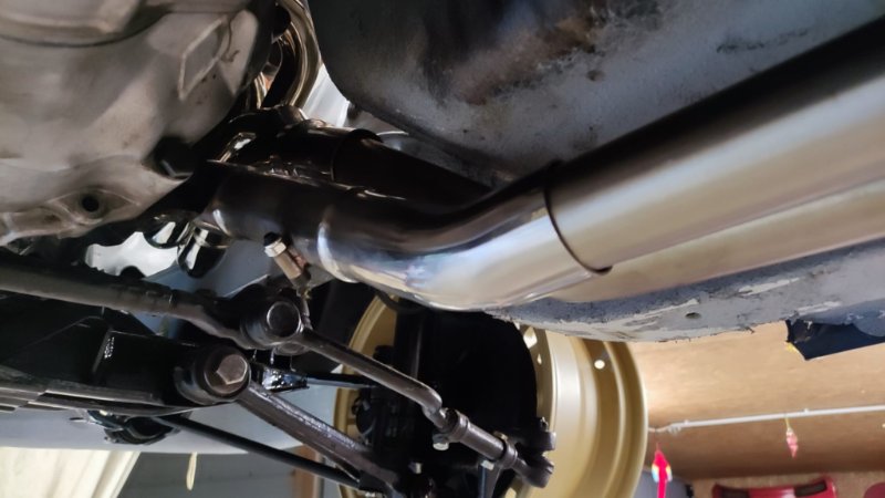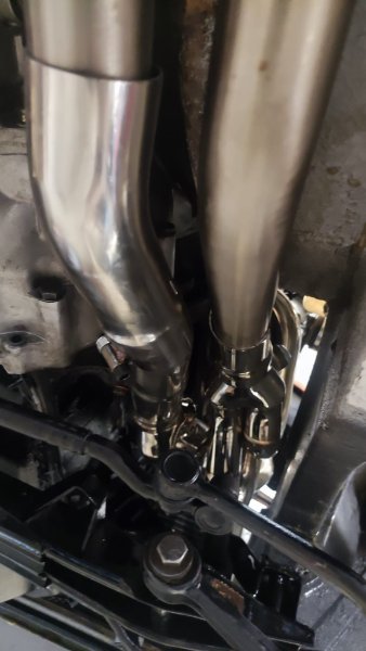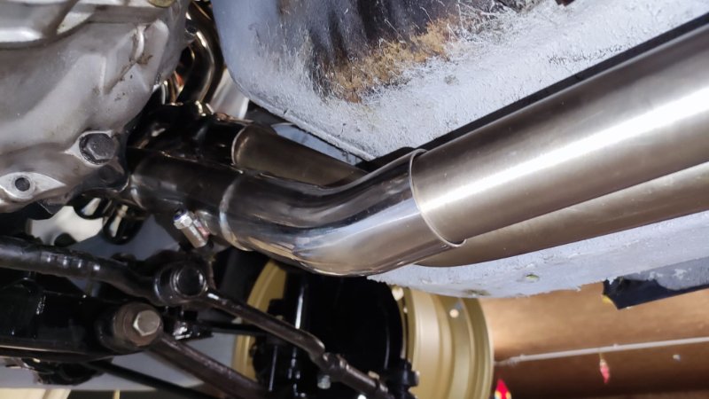 Zum Setup: Es ist der Fächer an eine Edelstahl-Abgasanlage aus Kleinanzeigen (Firma aus Berlin-Spandau) gekoppelt, ohne X-Pipe oder ähnliches. Die Abgasanlage stellt nach Verkäuferinformationen ein Nachbau einer 3.0 Anlage dar und passte zunächst Plug and Play an die originalen E9-Krümmer. Daher gehe ich davon aus, dass man den Schmiedmann-Fächer auch problemlos an Serien-Rohre angepasst bekommt.