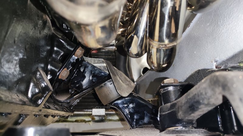 Ich sehe neben dem "heißen" Motorlager noch ein anderes Problem. Wenn du ein dünneres Rohr in Abgasrichtung in ein dickeres steckst, wirst du vermutlich Strömungsgeräusche bekommen. Das hatten wir neulich an einem Coupe. Das ist nicht lustig, das nervt extrem.