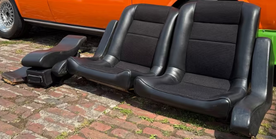 Ich würde die originalen Sitze mit dem schwarzen Stoff beziehen lassen. Den Stoff gibt es noch zu kaufen zumindest nachgefertigt.