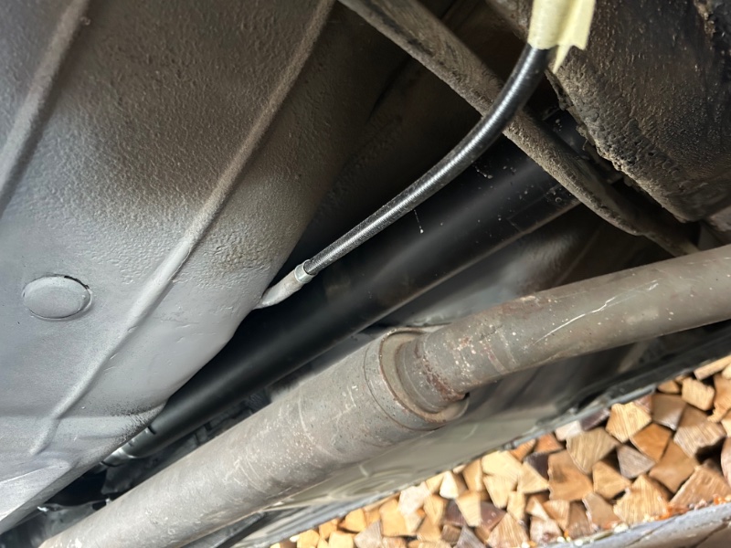 das Problem mit dem zu kurzen neuen Handbremsseil könnte auch daher kommen, dass diese Hülse vom oberen Ende der Ummantelung des Handbremsseils in dem Rohr am Unterboden stecken geblieben ist.