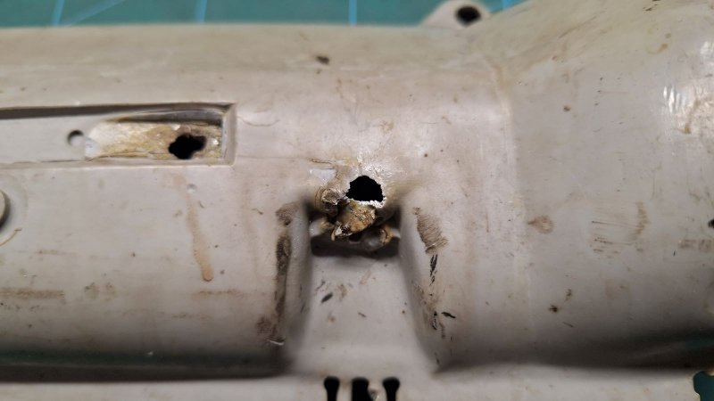 Der rechte Hebermotor lief zwar noch, hatte aber dank zweier kleiner Löcher im Kunststoffgehäuse arg gegammelt.