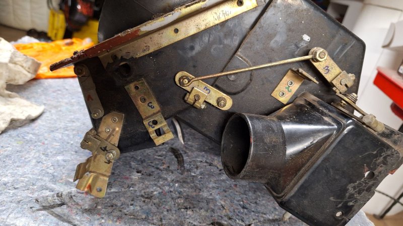 Bevor ich den Heizkasten zerlege habe ich zunächst alle Bowdenzüge und Hebel begutachtet.