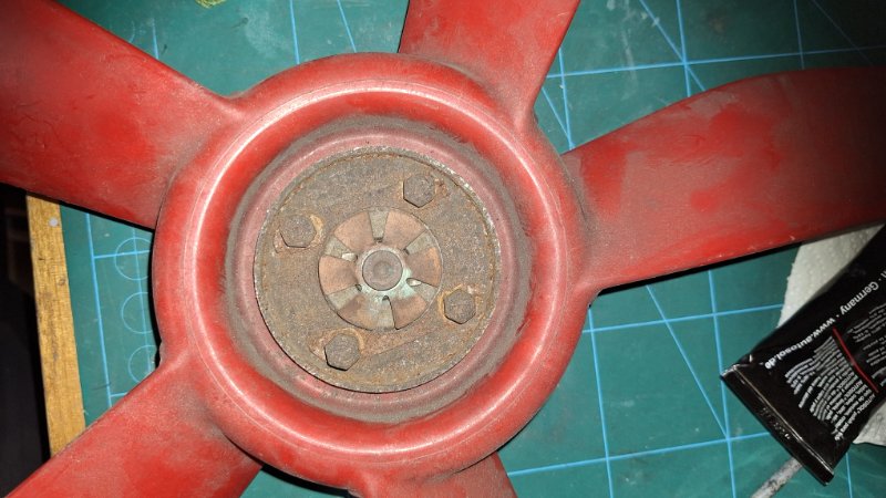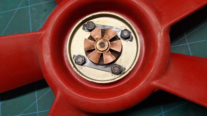 Der Lüfter incl. Reibkupplung ist wieder fit. Allerdings machte mir die Reibkupplung Sorgen. Glücklicherweise habe ich noch eine zweite, allerdings ungeprüft in der Teilekiste. Also habe ich erst mal die Dehnstoffelemente mit der Heißluftpistole gecheckt. Bei 55 Grad fuhren beide Dehnstoffelemente gute 5mm aus, perfekt!. Also schnell noch die Reibflächen mit dem Schleifvlies gereinigt und die Reibkupplungen zusammengebaut und getestet. Die eine Kupplung blockiert ab 52 Grad, die zweite ab 55 Grad, gemessen mit einem Infrarotthermometer.