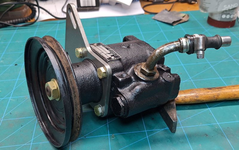 ...und weiter ging's mit der Servopumpe. Die war zwar völlig ölverschmiert aber im Betrieb immer dicht. Das ausgetretene Öl stammt wohl vom gammeligen Schlauch zum Ölbehälter. Es reicht erstmal eine gründliche Reinigung.