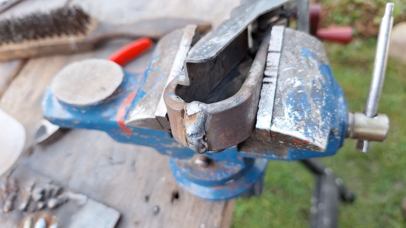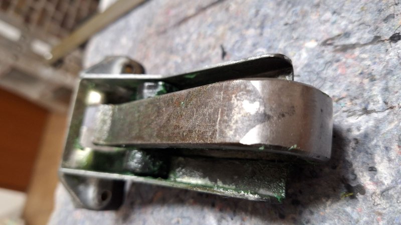 heute habe ich die gebrochene Türbremse geschweißt. Versuchte das mal mit einer V-Naht zu reparieren. Naja, sagen wir mal eher zusammengebraten. Aber verschliffen sieht es schon ganz passabel aus.