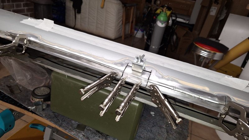 Die außenliegenden Bleche werde ich dann mit Schutzgas stumpf einschweißen und verschleifen.