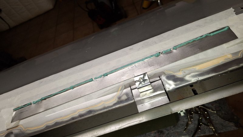 das innere Blech ist eingeklebt und sitzt prima. Morgen kommt dann der Rostschutz drauf und dann können die Bleche für außen eingeschweißt werden.