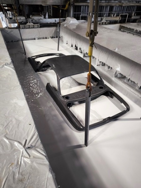 Ein weiterer Meilenstein ist erreicht worden! Die Karosseriearbeiten sind soweit abgeschlossen und am Montag ging es ins KTL-Bad. Danach wird grundiert und dann die Abdichtung mit Koroflex.
