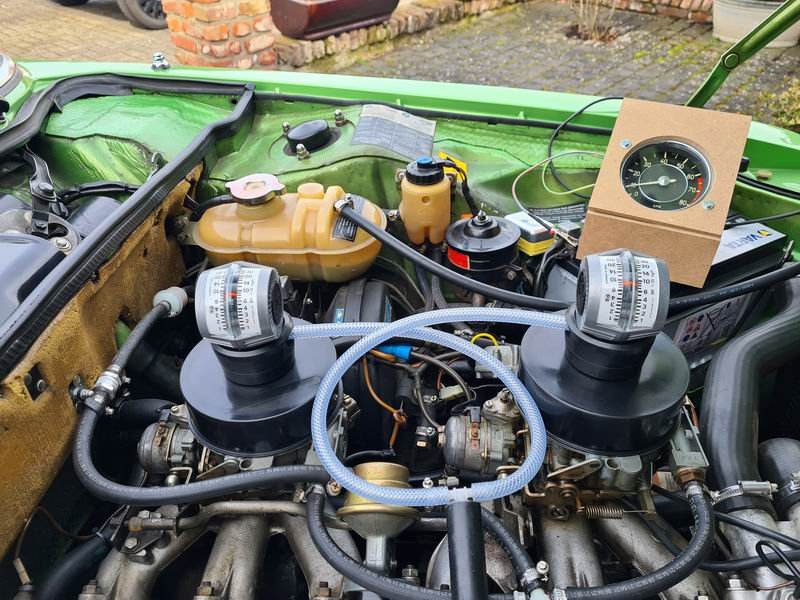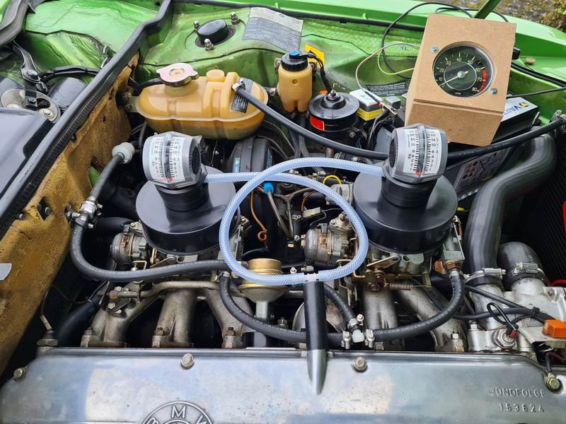 Wenn der Motor warm ist, bekomme ich ihn auf unter 1000 Umdrehungen ohne das er ausgeht, aber der Synchrometer zeigt bei der Drehzahl bei beiden Vergasern Werte um die 30 an. So weit ich das herausfinden konnte, müsste der Wert zwischen 4-5 kg/h liegen. Verstehe nicht wo der die viele Luft zieht.