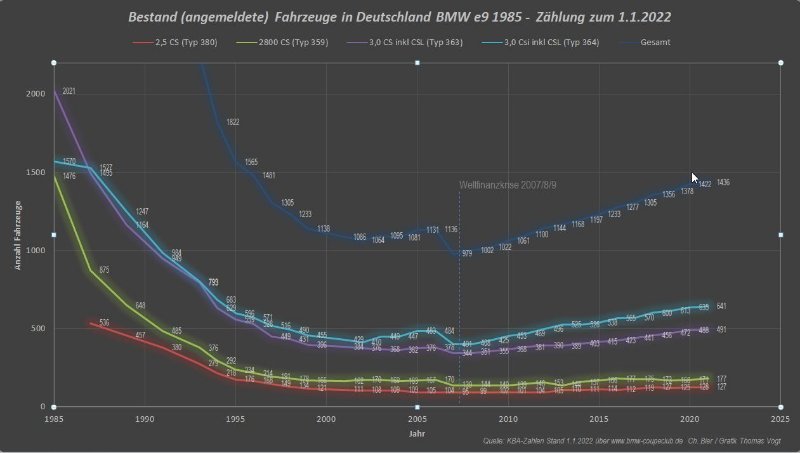 PS: Finde die Bestandszahlen für ein durchschnittlich 50 Jahre altes Auto ziemlich gut. Ich bin ziemlich sicher, dass es beim E3 nicht so rosig aussieht. Teure Coupes waren halt schon immer eine langfristige Versuchung wert. ;-)