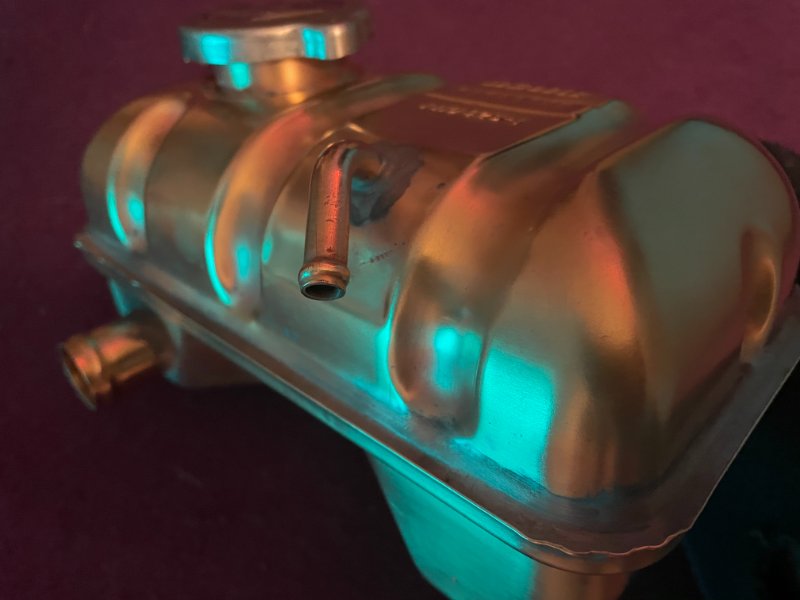 Ich war mit meinen Behältern beim Profi (Kühlerbau Spannagel in Mannheim) Der Meister erklärte mir, dass das alte Lötzinn komplett entfernt werden muss, an allen gelöteten Bauteilen. Also hab ich meine Behälter zuerst chemisch entlacken lassen. Die Behälter wurden dann komplett zerlegt, er besteht aus 8 Einzelteilen. Dann wurden die Behälter ausgebeult und wieder chemisch vorbereitet. Wichtig ist hier das richtige Flussmittel zu verwenden, da nur so die Oxydschichten aufgerissen werden. Entgegen der früheren Verlötungen, wird heute nicht mehr am Lötzinn gespart. Zu diesem Punkt dann auch das Bild. Am Ende wird der Behälter noch lackiert und er hält wieder ein paar Jahrzente. Die Kosten für alle Arbeiten waren allerdings 4 mal so hoch wie ein neuer Plastikbehälter kostet.