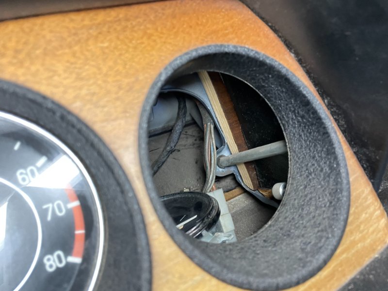 Damit die Blende komplett entfernt werden kann, muss auch der Lichtschalter gelöst werden. Knopf und darunterliegende Verschraubung lösen. Der Stecker fom Warnblinkschalter muss einfach nur abgezogen werden.