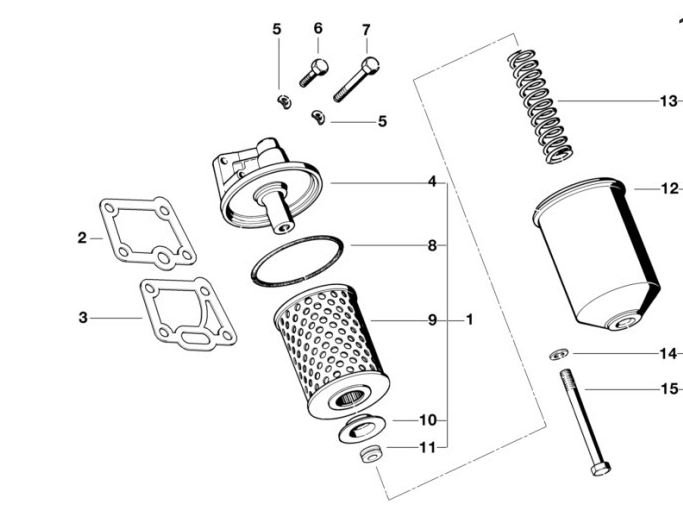 Vorher wurde der Ölfiltereinsatz über die Druckfeder, die Druckscheibe und den Dichtring nach oben gedrückt, dies sorgte dafür dass das Öl durchs Filter floss.