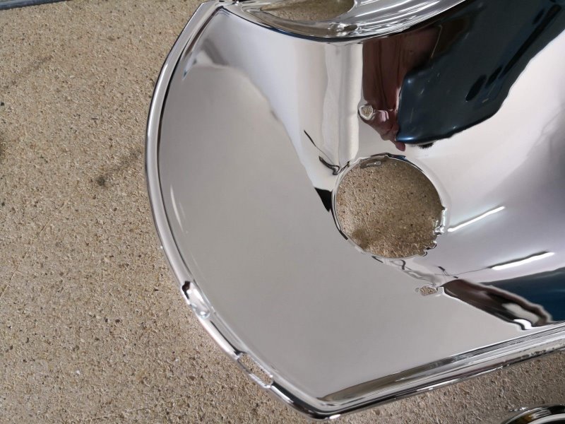 Mit Chromspray aus der Sprühdose kann man sehr gute Ergebnisse erzielen. Ebenso mit der etwas dickeren Grill-Alufolie, für die glatten Reflektoren. Seit es aber diese professionellen Chromlacke gibt, lass ich die Kunststoffreflektoren (siehe Beitrag Chrom-Spritzdüsen) immer lackieren, und die Metall-Reflektoren blau-verzinken. Die Alunieten die man für den Zusammenbau wieder braucht, gibt es beim Schraubenhändler