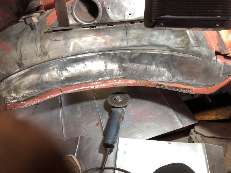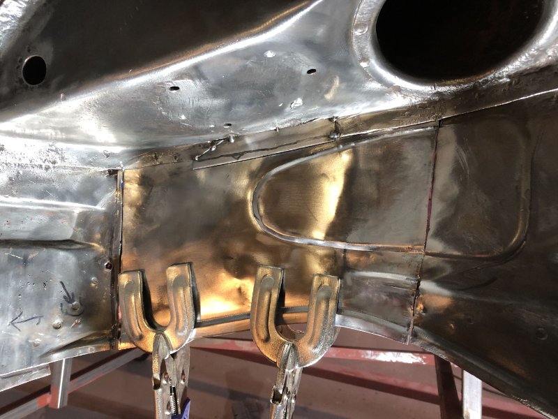 Die letzten Tage waren produktiv, das Radhaus istr soweit erstmal fertig und das linke Schwellerende ist fast ohne Verzug drin. Vieeeel Zeit gelassen zwischebn den Punkten und jeden mit der Druckluftpistole sofort abgekühlt.