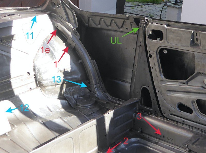 Aber ich verfolge jetzt den Hinweis von Gerhard, die Gurten doch hinten oben an der Hutablage (Punkt 11) zu montieren. Diese Stelle ist eigentlich für die hintere Gurten gedacht. Wie sich das mit meiner Hutablage ausgehen wird, kann ich noch nicht sagen. Ich möchte diese auf KEINEN FALL beschädigen, weil sie noch original und in einem guten Zustand ist.
