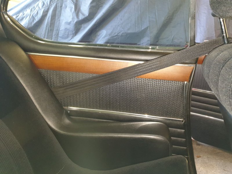 Leider sind in diesem Beitrag mehrere falsche Informationen. Auch das NFL Modell hat im oberen Bereich nur eine Sicherheitsgurtmutter unter der Armlehne, und zwar die etwas weiter oben angebrachte. Beim VFL Modell gab es ja noch keine automatischen Gurte, und deshalb musste da auch noch kein Platz für die Rolle unter der Armlehne geschaffen werden und die Mutter war weiter unten an einem stabilen Flacheisen angebracht. Da war es ja auch egal, wo der starre Gurt zwischen Seitenverkleidung und der Armlehne raus kam. Eine der beiden Muttern für den hinteren Gurt zu verwenden kann ja nicht funktionieren, da diese Positionen für einen 3 Punkt zu tief und für einen 2 Punkt Gurt zu hoch wären. Für die hinteren Gurte waren ausschließlich nur die beiden in der Regel immer vorhandenen Muttern an der Hutablage vorgesehen.