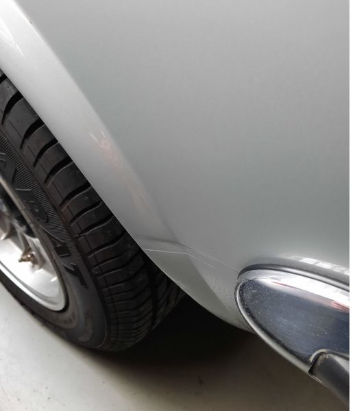 Die Fotos mögen täuschen, aber aus meiner Sicht ist der Vorderwagen auch nicht stimmig. Der Beifahrerkotflügel scheint zu niedrig angebracht (und die Haube in dem Bereich dann zu hoch), auf der Fahrerseite scheint der Kotflügel vorn ein wenig zu hoch (und die Haube dann zu tief)?