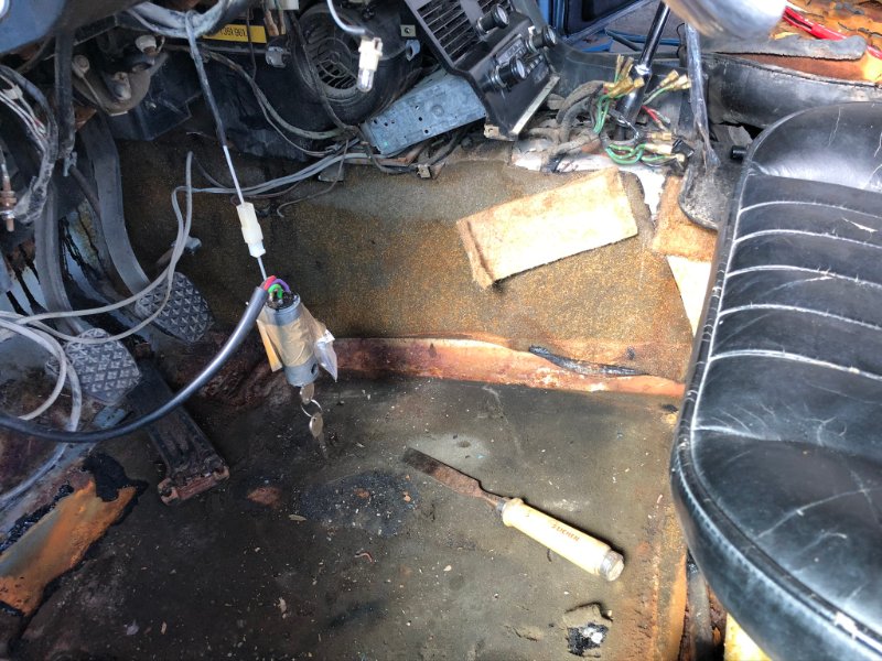 Der Fahrzeugboden ist durchgerostet / Du brauchst neue Bodenbleche.