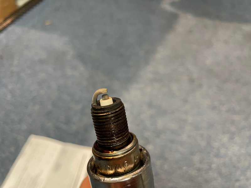 Die Zündkerzen W7DC habe ich auch nochmal gesichtet weil ich den adapter wegen der neuen Kabelstecker aufschrauben musste : sehen alle 6 so & für mich gut aus (hatte ich letztes Jahr schonmal erneuert): (was ich noch nicht ganz verstanden habe ist wieso die Zündspannung immer nur noch 8-11KV beträgt - bin davon ausgegangen das die höher sein würde)