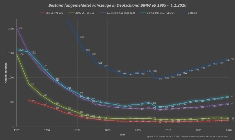 PS: Finde die Bestandszahlen für ein durchschnittlich 50 Jahre altes Auto ziemlich gut. Ich bin ziemlich sicher, dass es beim E3 nicht so rosig aussieht. Teure Coupes waren halt schon immer eine langfristige Versuchung wert. ;-)