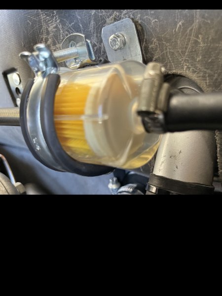 Irgendwie habe ich trotz Druckmessung immer noch die Benzinzufuhr in Verdacht, denn unmittelbar nach einer Fahrt ist ziemlich wenig Sprit im Filter. Kurz danach steigt der Pegel jedoch wieder auf ca. 50% - siehe Bilder.