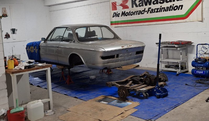 Mittlerweile ist der CSI bis auf Vorderachsträger, Motor & Getriebe gestrippt und begutachtet. Unser Plan war den Wagen quasi von "hinten nach vorne" zu überarbeiten da am Heck die größten Aufgaben zu bewältigen sind.