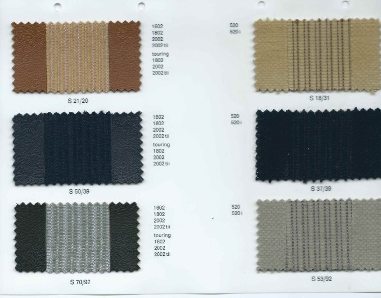 Hab mir von Ries (BMW-Oldtimer-Teile) ein Muster von seinem blauen Stoff mit Artikelnummer 51921817042 schicken lassen, der mir allerdings etwas anders aussieht als der originale Velourstoff: hat eine deutliche Richtung (fast gerippt aussehend) - der originale eher nicht. Und ist auch dunkler als der originale. Der von Ries scheint auch für E3 und E12 zu sein, aber ich wäre sehr glücklich, wenn ich einen korrekteren Stoff finden könnte.