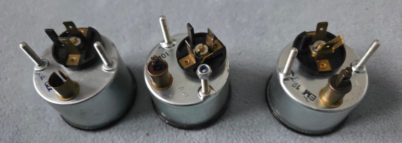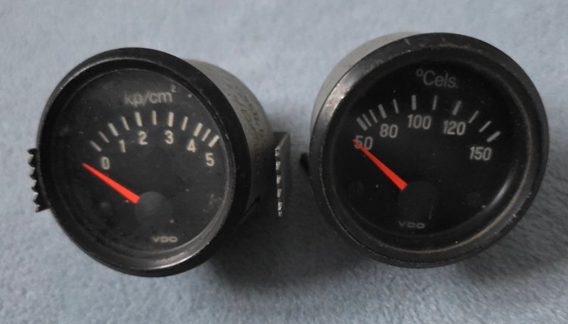 du hast da 3 verschiedene Anzeigen aus 3 jahrzehnten. Rechts ist eine vom Audi aus den 80ern, in der Mitte ist eine Wassertemperaturanzeige aus den 70ern und links eine moderne Öldruckanzeige aus den 90ern. Ich gehe davon aus, dass die beiden äusseren mit Kunststoffgehäuse sind, die kann ich nicht umbauen. Wenn du die Wassertemperaturanzeige für Öltemperatur nimmst, wird sie sicherlich einen falschen Wert anzeigen.