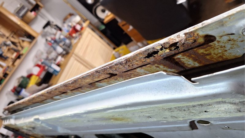 Die Ecke werde ich ersetzen, der Boden ist ok. Kein grober Rost und keine Durchrostungen.