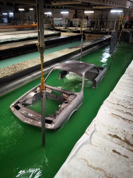 Ein weiterer Meilenstein ist erreicht worden! Die Karosseriearbeiten sind soweit abgeschlossen und am Montag ging es ins KTL-Bad. Danach wird grundiert und dann die Abdichtung mit Koroflex.