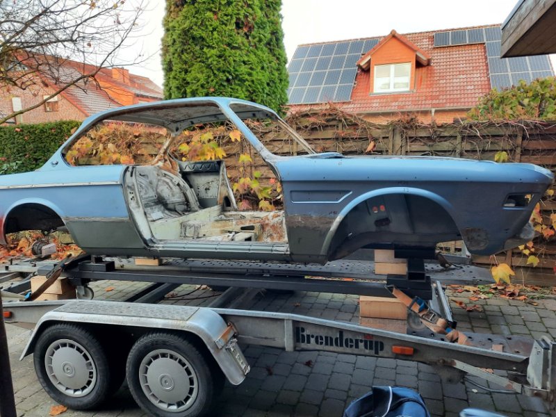Letzte Woche habe ich das Transportgestell wieder gerichtet und die Karosse umgeladen. Die Schweißarbeiten sind abgeschlossen und der Winter steht vor der Tür. Der nackte E9 braucht wieder was zum anziehen und soll jetzt den ersten Farbanstrich in Form einer KTL Beschichtung bekommen.