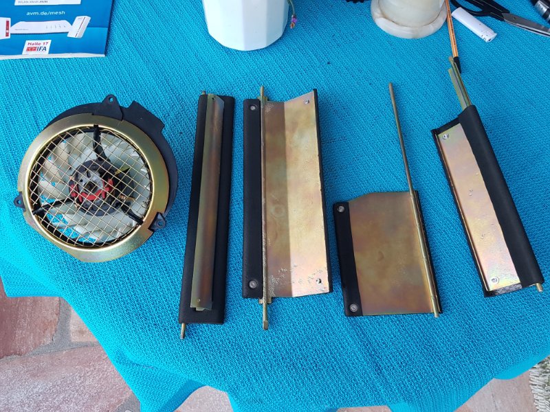 Mark, 100 Punkte, es sind zwei der drei Luftleitbleche aus dem Heizungskasten. Den revidiere ich gerade da die Klappen sehr schwergängig waren. Die Ursache war verschrumpeltes und ausgehärtetetes Gummi an den Kanten dieser Bleche. Die muss ich jetzt neu gummieren, hat das schonmal jemand gemacht?