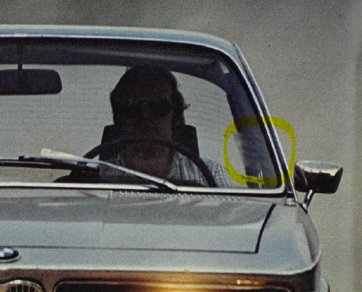 Auf den Bildern sieht man nicht nur einen noch jungen Manfred Jantke engagiert ins Volant greifen, sondern auch den besagten Aufkleber, platziert im unteren und noch geraden Bereich der Frontscheibe an der fahrerseitigen A-Saeule.