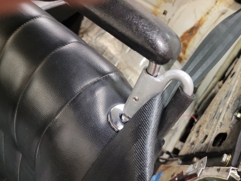 ich habe mir mal eine Gurtführung selber gebaut. Aus alten Sicherheitsgurtführungen, Stück Benzinschlauch, Rohrhülsen und einer M6 Madenschraube.