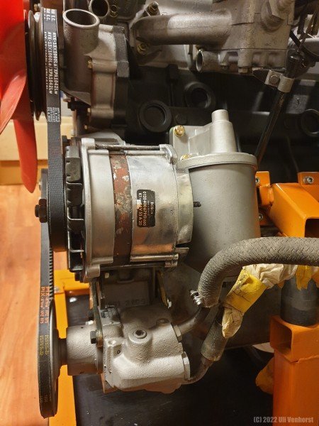 Ursprünglich wird die Servopumpe über die Riemenscheibe der Wasserpumpe angetrieben.