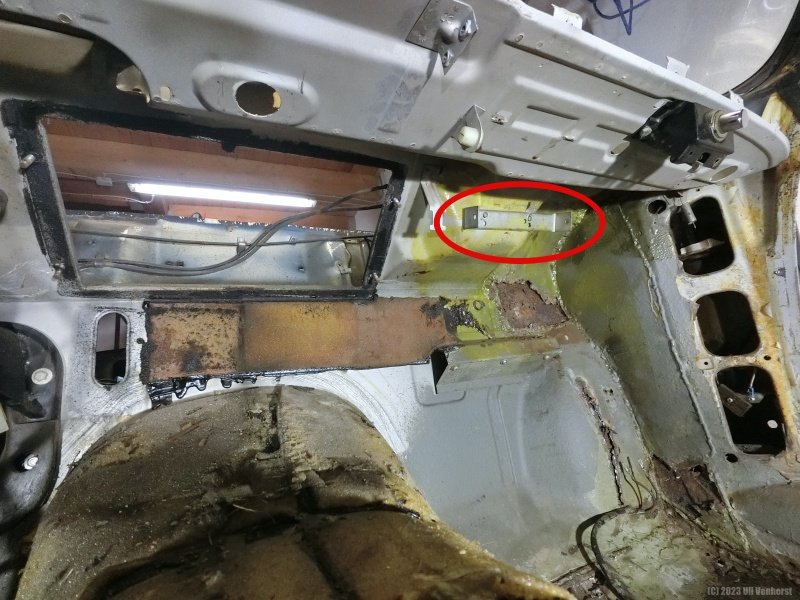 Der Halter hat die gleiche Farbe und auch das alte Wachs drauf gehabt, scheint also schon immer dagewesen zu sein. Ich habe aber keine Ahnung was daran montiert werden soll. Die Schrauben gehen in einen rostanfälligen Bereich im Wasserkasten und haben dort die Bitumenmatte hochgedrückt, so dass dort unbemerkt Rost entstehen konnte. Wenn der Halter für mein Fahrzeug (2800 CS, BJ. 1969) keine Funktion hat, lasse ich ihn lieber weg.