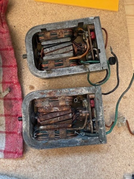 Und bei den Motoren ein ähnliches Bild. Abgesehen von der fortgeschrittenen Korrosion im Motor selber sind auch bei beiden Motoren die Wellen fest... das ist ganz schlecht ;(